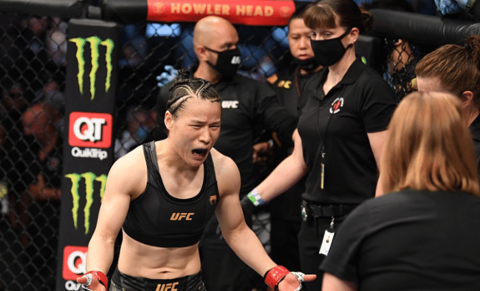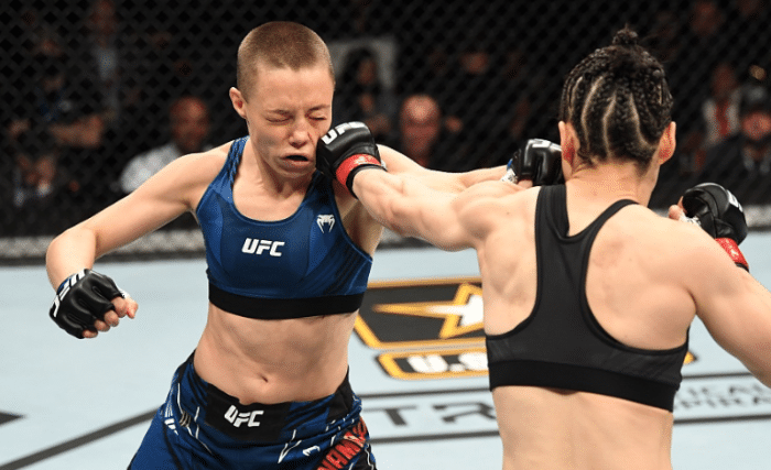 24直播网讯 今天中国的UFC草量级冠军张伟丽迎来自己的第二场卫冕战,最终非常遗憾,在第一个回合中,张伟丽就被对手罗斯-娜玛尤纳斯左腿高扫直接踢倒在地,裁判终止比赛,这样张伟丽失去金腰带,而罗斯则挑战成功。这场比赛张伟丽出场和退场前后现场都有观众发出嘘声,而被KO之后的张伟丽直言自己当时还有意识,也希望可以和罗斯打二番战。