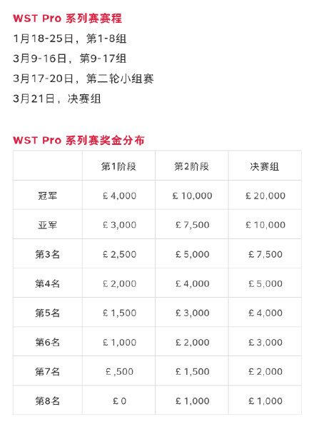 2021斯诺克首届WST职业系列赛赛事简介及签表一览:丁俊晖缺席