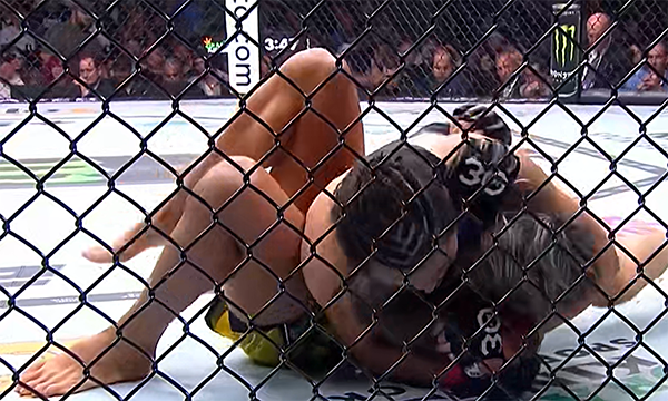 第四回合,双方站立的对峙,扫踢试探,莱莫斯始终控制着距离,不想让张伟丽近身,双方略有保守。张伟丽突然一个下潜,近身摔倒对手。莱莫斯企图控制张伟丽的脖子,张伟丽挣脱开,双方回到站立。182-21的击打数,张伟丽优势明显。