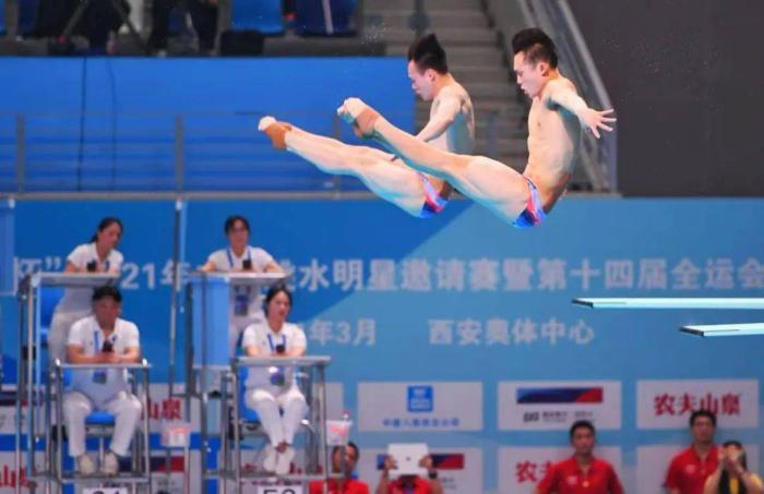首先是男子双人3米跳板决赛,王宗源和谢思埸搭档出场。谢思埸是这个项目的老将,两次获得世锦赛冠军,王宗源虽然是00后,但是也夺得过1米跳板的冠军。因此二人搭档有望向冠军发起冲击。