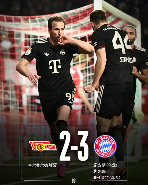 德国杯-拜仁3-2柏林联合 凯恩破门+送点 柏林联合两送乌龙