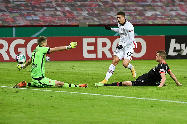 在2020-2021赛季德国杯足球赛第二轮比赛中,勒沃库森队主场以4比1战胜法兰克福队,晋级下一轮。