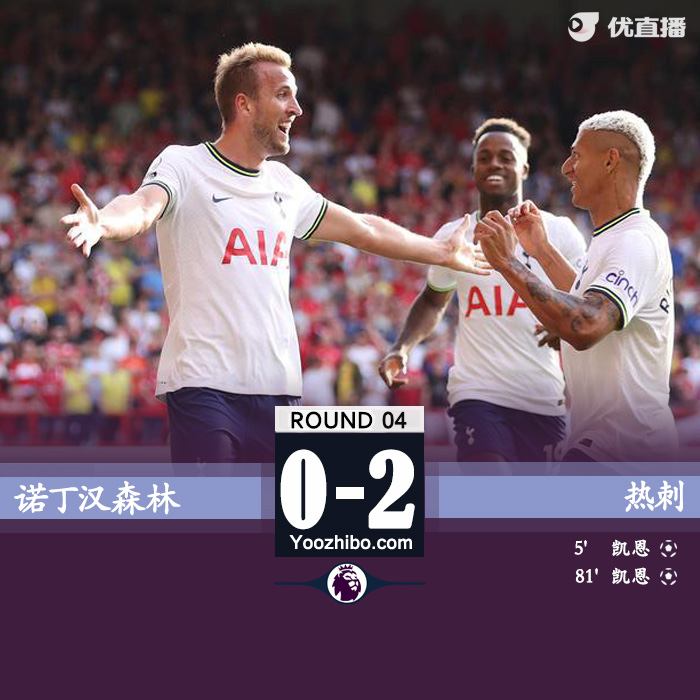 北京时间8月28日23点30分,英超第4轮热刺客场挑战诺丁汉森林。上半场,库卢塞夫斯基助攻凯恩先拔头筹。下半场,库克送点,凯尔主罚点球被亨德森扑出,理查利森替补登场助攻凯恩头球破门杀死比赛,全场比赛结束,热刺2-0诺丁汉森林。