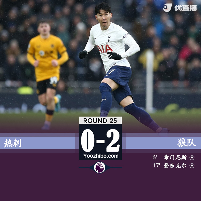 北京时间2月13日22点,英超第25轮热刺对阵狼队。上半场,洛里多次贡献扑救但仍旧被希门尼斯和登东克尔通过补射各进一球,孙兴慜错失良机。下半场,热刺后防仍旧频频犯错,狼队连续错失良机,温克斯抽射中柱,全场比赛结束,热刺0-2狼队。