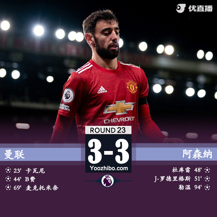 [QQ全场集锦] 英超-卡瓦尼头槌B费破门难救主 曼联3-3遭埃弗顿绝平