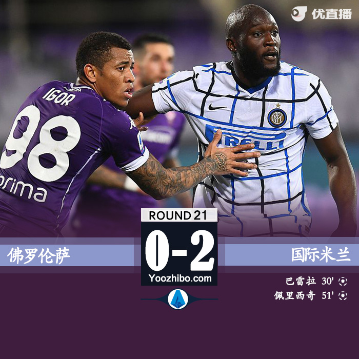 北京时间今天3:45,意甲联赛第21轮国际米兰做客挑战佛罗伦萨的比赛准时开始。上半场桑切斯助攻巴雷拉世界波破门,半场国米一球领先。下半场回来,阿什拉夫助攻佩里西奇进球,卢卡库进球被吹,全场结束国米2-0战胜佛罗伦萨。