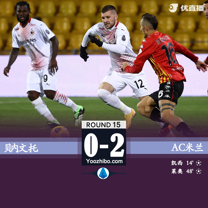 北京时间1月4日星期一01:00,意甲第15轮贝内文托主场迎战AC米兰。上半场,雷比奇造点,凯西主罚命中,VAR介入判罚直红罚下托纳利,贝内文托半场0-1AC米兰。下半场,莱奥机敏吊射破门,卡普拉里造点主罚偏出,凯西推射中柱。最终,十人AC米兰客场2-0战胜贝内文托,红黑军团继续保持本赛季联赛不败,同时重返意甲榜首。AC米兰也实现了跨赛季27场不败的战绩。