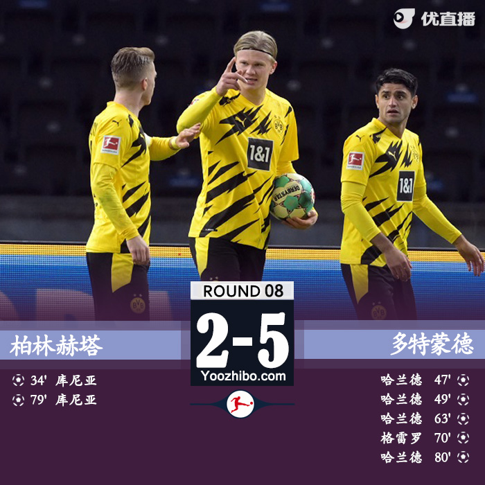 第6分钟,主队率先发起攻势,赫塔反击推进,卢克巴基奥禁区外一脚远射直接打飞。第14分钟,弧顶左贡多奇持球拖沓遭断抢。第16分钟,外围中路达胡德直塞,哈兰德拉球转身抹过包夹,点球点射中后卫,左侧罗伊斯跟进补射遭施沃洛托出。第22分钟,左侧角球柏林赫塔开后点,没打出威胁。第27分钟,弧顶右达里达攻门较正,布尔基摘到。第33分钟,赫塔门将大脚开向前场,卢克巴基奥分球右侧库尼亚,后者远射直接破门!主队赫塔1-0领先!这也是库尼亚连续第三轮比赛取得进球了!