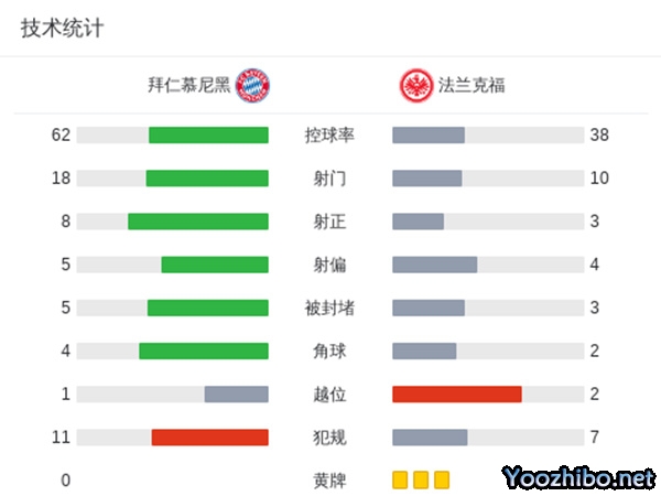 最终比分为拜仁慕尼黑2-1法兰克福。