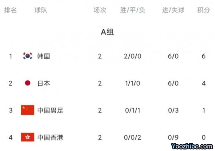 24直播网07月25日讯 东亚杯次轮比赛全部结束,中国男足0-0日本男足,韩国男足3-0中国香港男足。