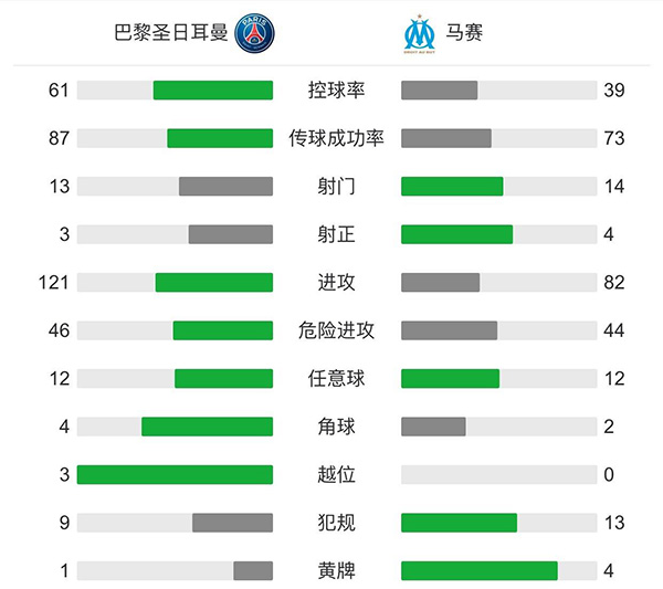 查看:巴黎圣日耳曼vs马赛 全场录像技术统计:
