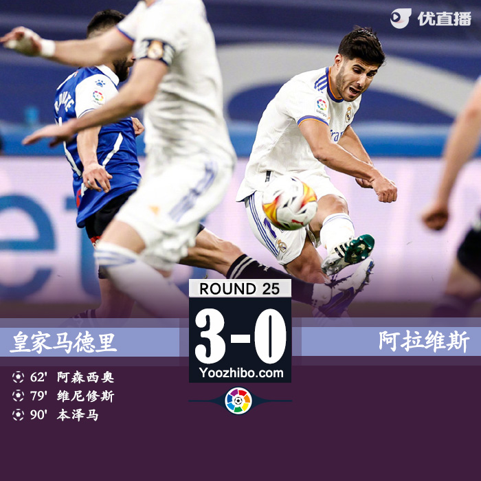 北京时间2月20日凌晨4点整,2021-22赛季西甲第25轮在伯纳乌球场展开角逐,皇家马德里坐镇主场迎战阿拉维斯。上半场双方均无建树,下半场阿森西奥世界波打破僵局,维尼修斯扩大比分,本泽马两传一射。最终皇家马德里主场3-0完胜阿拉维斯,皇马终结各项赛事两场不胜。积分榜方面,皇马积57分继续领跑,阿拉维斯积20分位居倒数第二。