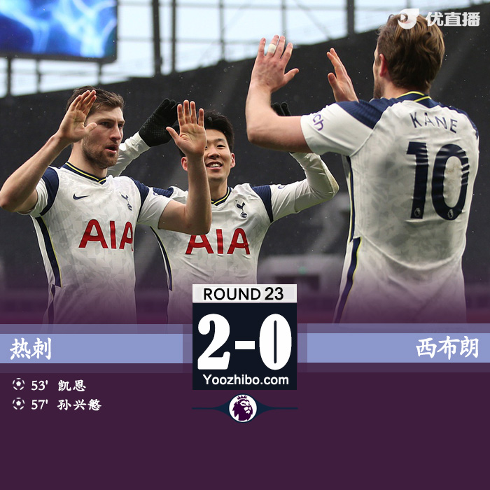 北京时间2月7日晚20:00,英超联赛第23轮继续进行,热刺坐镇主场迎战西布朗。上半场,凯恩劲射中框后又失单刀良机,洛里扑出近距离头球攻门,双方均未改写比分。下半场,凯恩破门打破僵局,孙兴慜扩大比分,迪亚涅打入两球都越位在先。全场比赛结束,热刺2-0力克西布朗,结束三连败。
