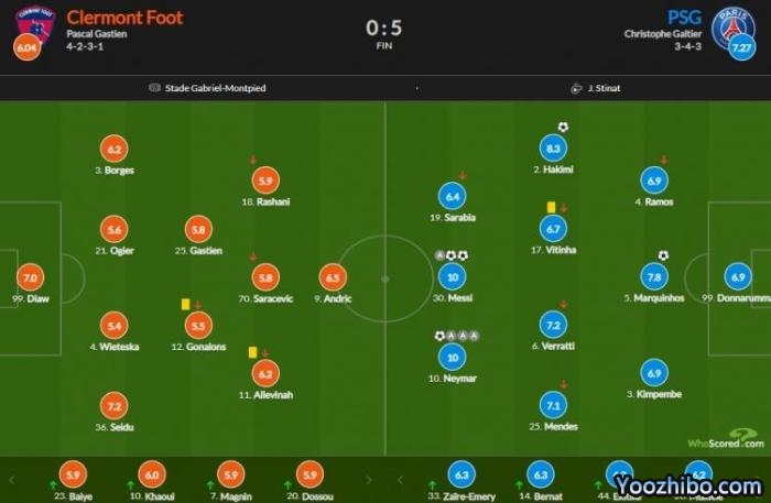 24直播网08月07日讯 在刚刚结束的法甲首轮中,巴黎客场5-0大胜克莱蒙。比赛中梅西两射一传,内马尔一射三传,两人完美的表现均获得满分10分!