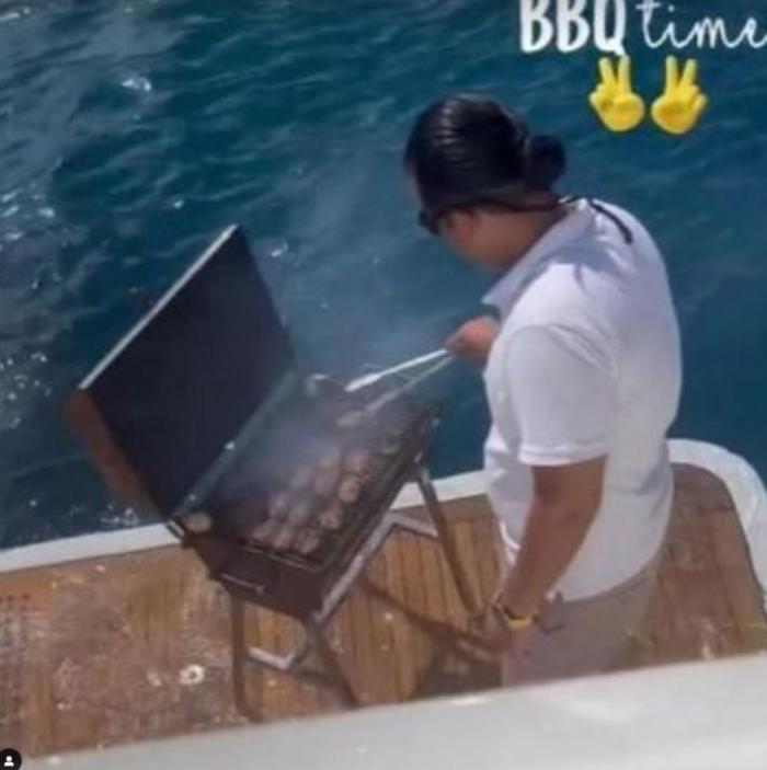 随后,拉莫斯及妻子皮拉尔-卢比奥在社交媒体上晒出度假的照片,这艘船上有健身房,还有一个迷你烧烤炉,并有一位厨师在负责烧烤。