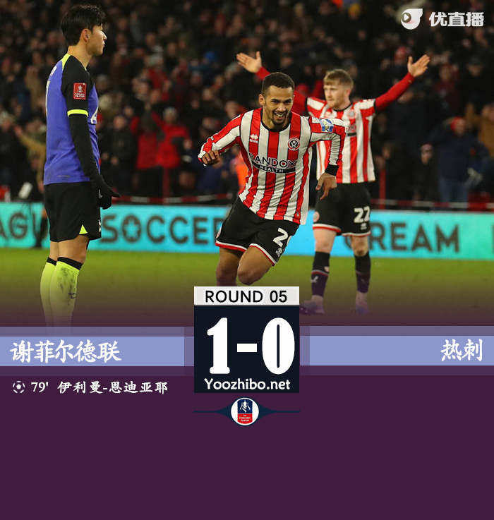 北京时间3月2日凌晨3:55,足总杯第五轮,热刺客场挑战谢菲尔德联。上半场,小卢卡斯击中横梁,双方互交白卷。下半场,恩迪亚耶替补破门,热刺苦攻无果!全场比赛结束,热刺0-1谢菲尔德联遭淘汰!