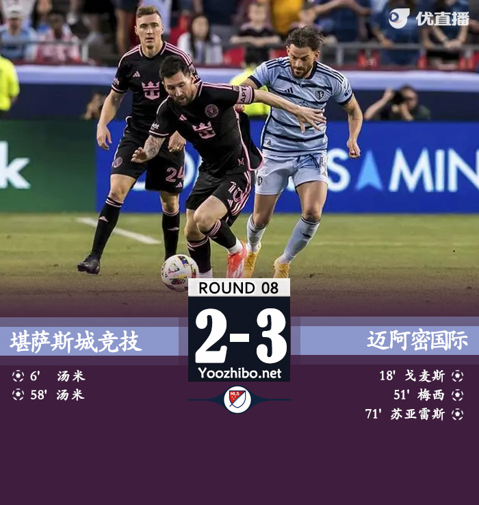 北京时间4月14日,美职联常规赛,堪萨斯城体育主场对阵迈阿密国际。比赛第6分钟,托米远射率先得分,比赛第18分钟,梅西上帝视角助攻,迭戈-戈麦斯破门扳平比分,第51分钟,梅西世界波得分将比分反超,第58分钟,托米凌空得分将比分扳平,第71分钟,迭戈-戈麦斯助攻苏亚雷斯得分再次反超。最终比分堪萨斯城体育2-3迈阿密国际。