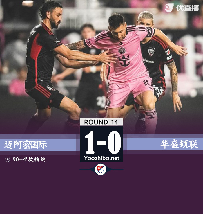 北京时间5月19日07:30,美职联迈阿密国际迎战华盛顿联的比赛,上半场双方攻势寥寥,克雷马斯基失单刀,半场结束,迈阿密国际0-0华盛顿联。下半场布斯克茨助攻坎帕纳补时抽射绝杀,最终迈阿密国际1-0华盛顿联。