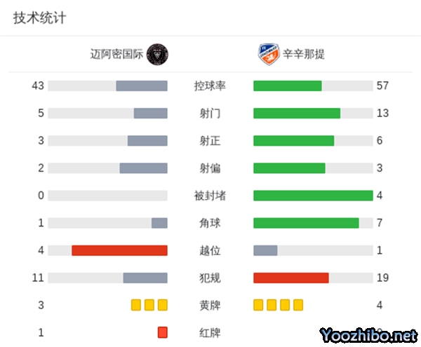 全场比赛结束,迈阿密国际2-0战胜辛辛那提FC。