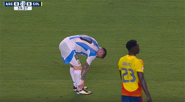 24直播网讯 北京时间7月15日,备受关注的2024年美洲杯决赛打响。卫冕冠军阿根廷迎战世界第12位的哥伦比亚队。上半场,阿根廷遭到了哥伦比亚的顽强狙击。而比赛中,阿根廷队长梅西,还因为遭到哥伦比亚球员凶狠的铲抢导致受伤。