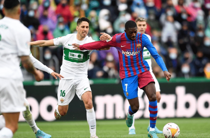 比赛第43分钟,埃尔切快速打穿巴萨防线,菲德尔前插直接小角度低射破门,巴萨0-1落后;比赛第59分钟,巴萨艰难追平比分,阿尔巴在禁区内做球,前插入小禁区的费兰-托雷斯在门前抢射破门。比赛第83分钟,德佩突破造成了巴拉甘手球,裁判判罚点球,德佩主罚命中,巴萨2-1逆转的同时绝杀埃尔切,艰难拿到3分。