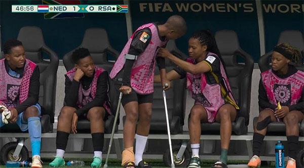 南非女足虽然比分上处于落后,但踢得积极主动,个人能力很出色,尤其是加特拉娜这个点,连续考验荷兰门将。上半场结束前,加特拉娜的单刀射门还是没有取得进球。同时南非女足的塞奥波森和姆巴内受伤被换下,南非队遭遇打击。值得一提的是荷兰女足门将对南非上半场5次扑救,比整个小组赛阶段还多1次,足以看出南非队的进攻很有威胁。