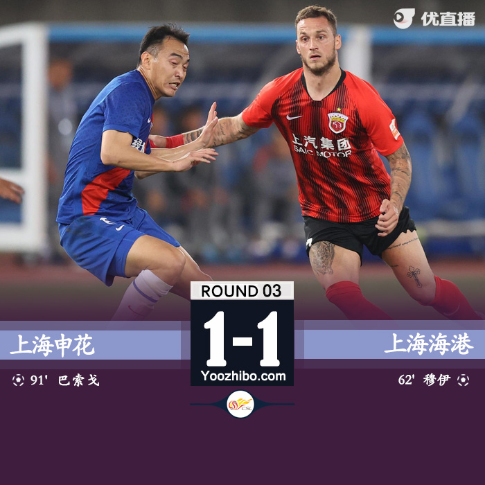 北京时间5月5日晚8点,2021赛季中超联赛苏州赛区第三轮展开一场焦点大战,上海申花与上海海港在苏州体育中心迎来德比大战。上半场,双方火药味十足,场上拼抢也十分激烈,但威胁进攻都不多。下半场,穆伊禁区外围精彩世界波打破僵局,随后,申花莫雷诺和巴索戈都错失单刀良机。第82分钟,买提江凶狠铲抢于汉超被直红罚下。第90分钟,申花获得点球,巴索戈一蹴而就为申花扳平比分。最终,十人作战的上海海港1-1与上海申花战平,两队本赛季继续保持不败。