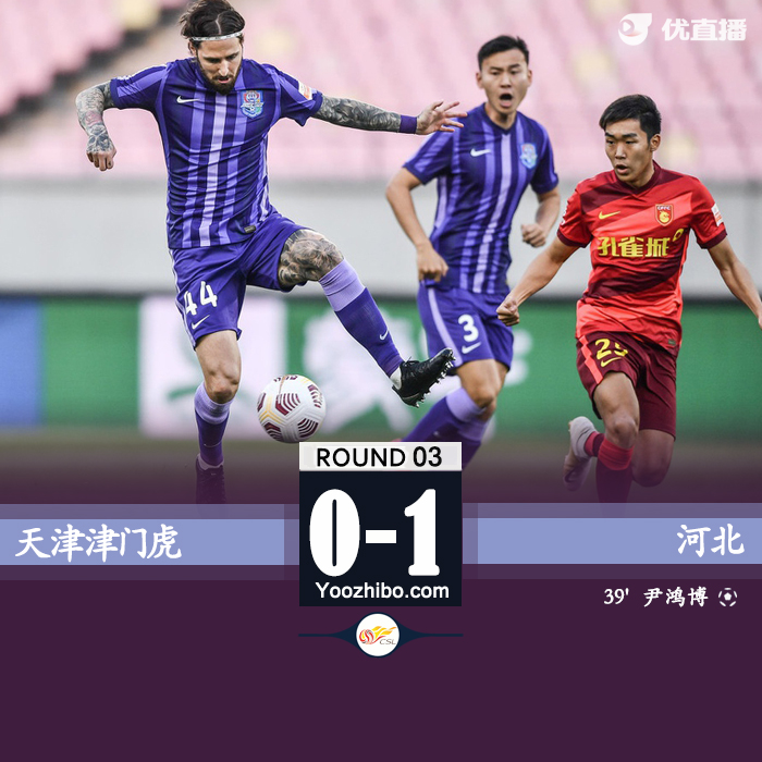 北京时间5月5日18:00,中超联赛第3轮,天津津门虎对阵河北队。上半场比赛,保利尼奥、廖伟接连错失直面门将的单刀机会,周通伤退,马尔康头球摆渡给尹鸿博破门。半场战罢,河北1-0天津津门虎。下半场比赛,尹鸿博禁区外远射偏出,丛震飞铲梅米舍维奇染红。全场比赛战罢,河北1-0战胜十人天津。