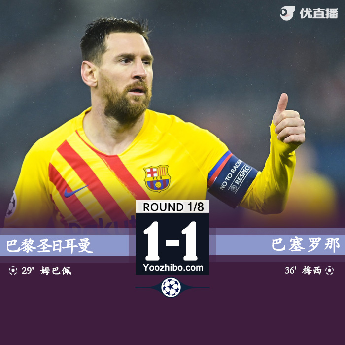 24直播网3月11日讯 北京时间3月11日4:00,欧冠1/8决赛次回合一场较量在巴黎圣日耳曼和巴塞罗那之间进行。上半场登贝莱多次错失机会,德斯特劲射击中横梁,朗格莱送点姆巴佩主罚命中,梅西世界波扳平比分,纳瓦斯扑出梅西点球。下半场双方均无建树。最终巴黎1-1战平巴萨,总比分5-2淘汰对手晋级欧冠八强。