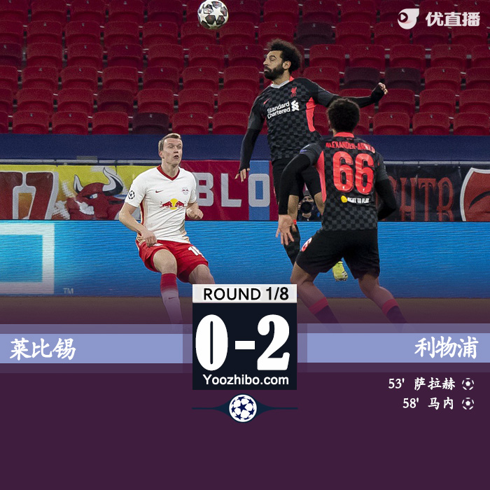 北京时间2月17日凌晨4点,20-21赛季欧冠1/8决赛首回合,莱比锡在中立场地与利物浦展开交锋。上半时双方没有进球,奥尔默头球中柱,菲尔米诺进球因球先出底线被吹无效,马内头球、罗伯逊吊射险破门。下半时莱比锡连续出现失误,萨拉赫和马内5分钟内分别单刀破门,安吉利诺、黄喜灿失良机。最终,莱比锡0-2利物浦,利物浦获得晋级先机。