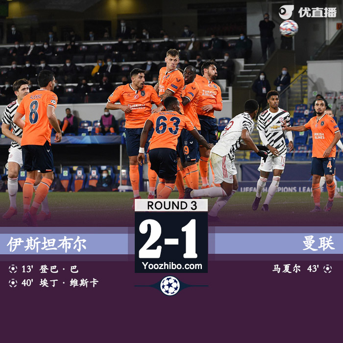 24直播网讯:北京时间11月5日01:55(土耳其当地时间4日20:55),2020/21赛季欧冠H组第三比赛日一场焦点战展开争夺,曼联客场1比2不敌伊斯坦布尔,登巴巴和维斯卡进球,马夏尔扳回一城。曼联下半场围攻未能打破僵局,红魔小组连胜被终结。