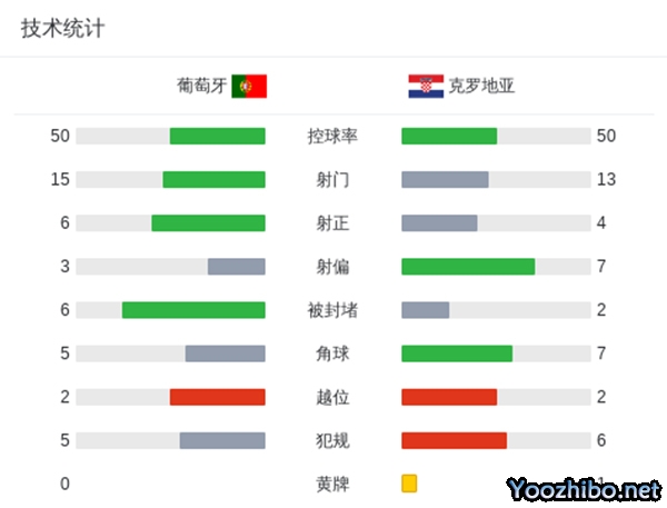 第7分钟,葡萄牙早早取得领先!达洛特斜插进入禁区,领球后左脚打门击穿利瓦科维奇小门!葡萄牙1-0领先克罗地亚。
