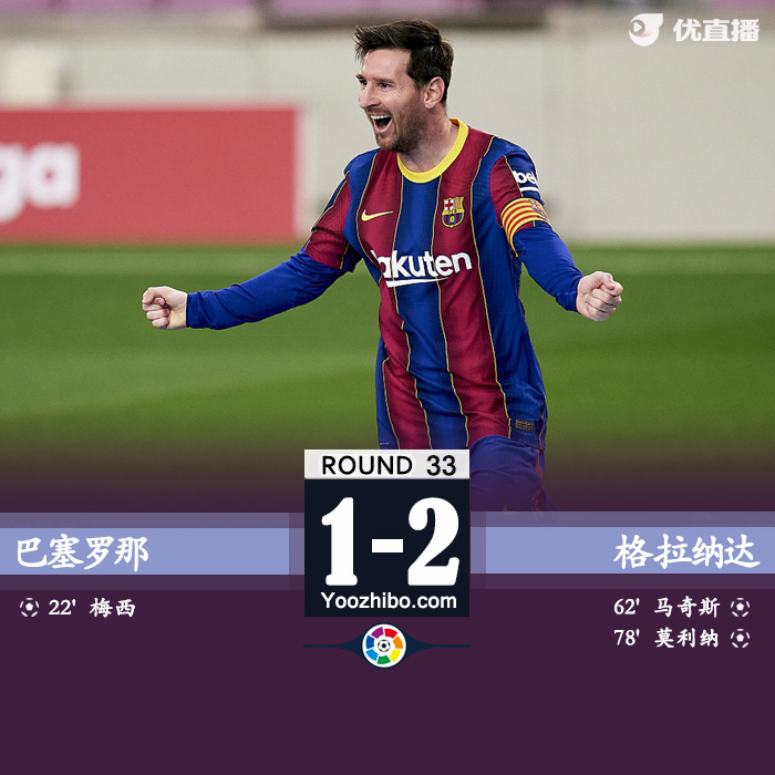 北京时间4月30日1点,西甲第33轮巴塞罗那主场对阵格拉纳达。上半场,梅西帮助巴塞罗那取得领先,但他随后错失一记单刀,索尔达多也有一次半单刀机会未能把握住。下半场,马奇斯为格拉纳达扳平比分,科曼抱怨裁判被红牌罚下,莫利纳替补建功反超比分,全场比赛结束,巴塞罗那1-2格拉纳达。这场比赛过后,巴塞罗那仍旧以71分排在联赛第三。