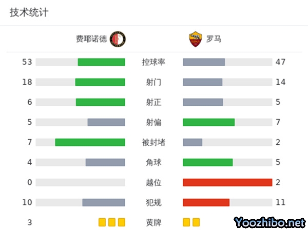 关键事件: 第45分钟,费耶诺德先开记录!哈特曼左路下底传到禁区伊戈尔无人看防情况下高高跃起头球破门,费耶诺德1-0罗马。