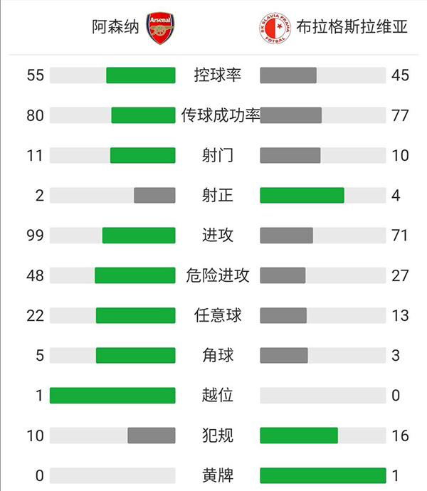 全场比赛结束,最终首回合阿森纳主场遭绝平1-1布拉格斯拉维亚。