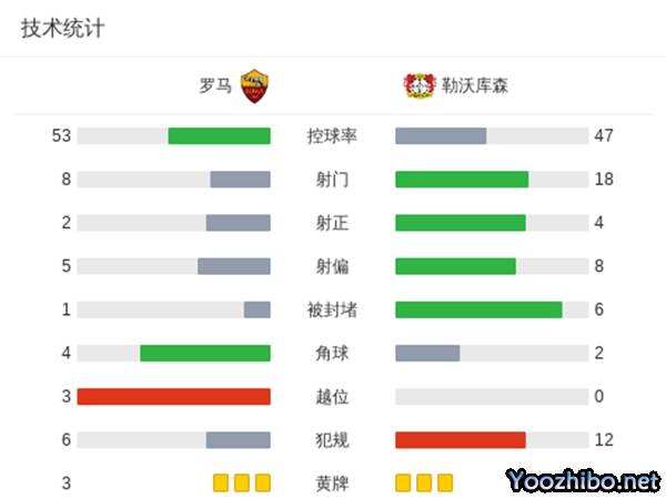 最终,罗马0-2勒沃库森。