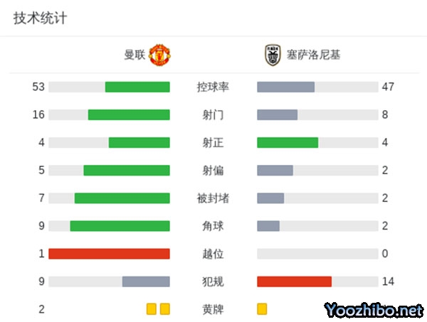 最终曼联2-0塞萨洛尼基取得欧联首胜。