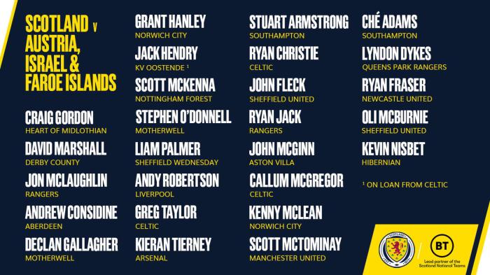 24直播网讯 苏格兰大名单如下: