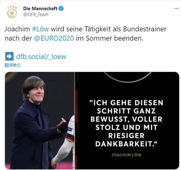 24直播网3月10日讯 在2021年欧洲杯结束后,勒夫将不再执教德国国家队,教练本人要求结束合同,原合同2022年世界杯后结束,德国足协同意了他的请求。