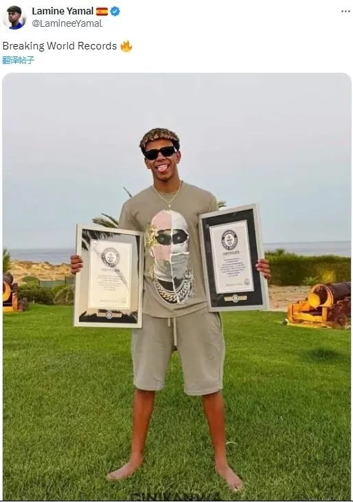 24直播网讯 欧洲杯最年轻出场+进球!17岁亚马尔获得吉尼斯纪录牌匾!