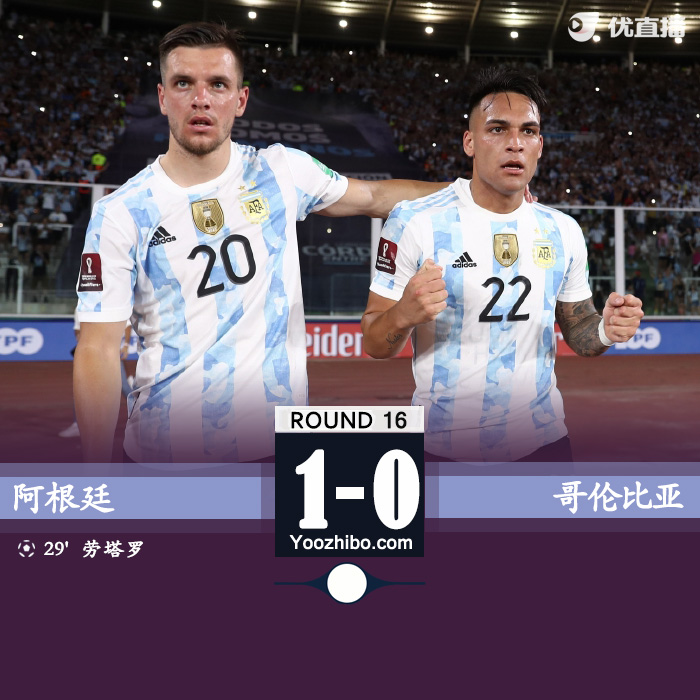 北京时间2月2日上午7:30,世界杯南美区预选赛,阿根廷对阵哥伦比亚。上半场,劳塔罗扫射破门。半场战罢,阿根廷暂1-0哥伦比亚。下半场,迪马利亚屡造险。全场结束,阿根廷1-0战胜哥伦比亚。