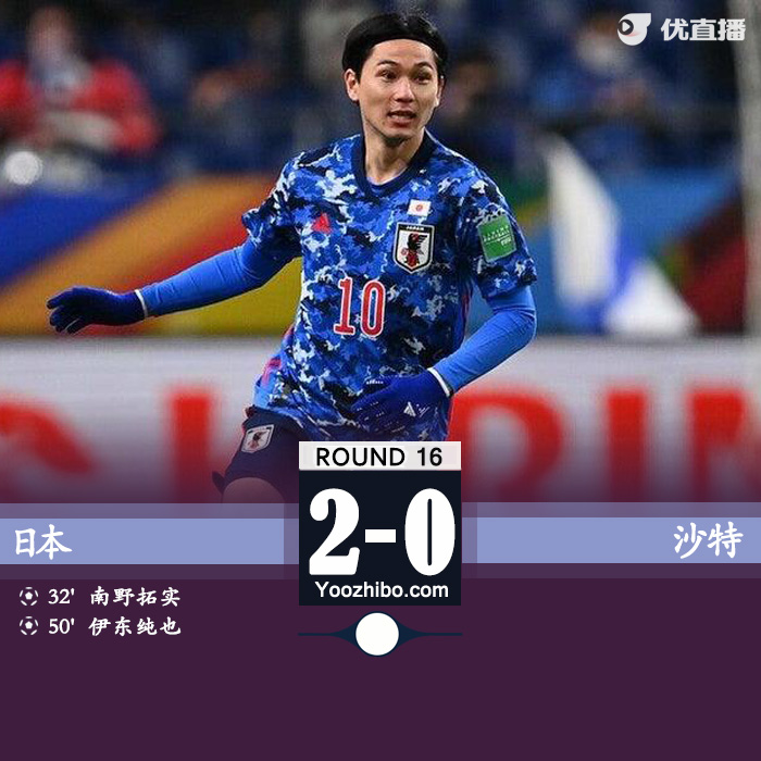 北京时间2月1日晚上18:14,12强赛B组第8轮焦点战,日本对阵沙特。上半场,阿马勒基伤退,伊东纯也助南野拓实破门。半场战罢,日本暂1-0沙特。下半场,伊东纯也世界波。全场结束,日本2-0沙特。