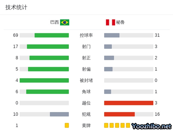 最终巴西4-0秘鲁,10轮过后积16分,积分追平乌拉圭。
