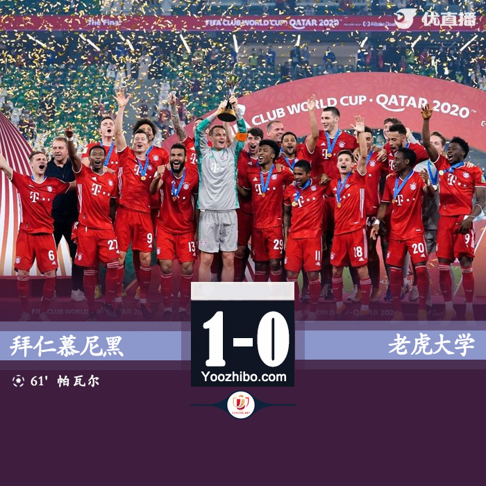 最终,拜仁慕尼黑1-0战胜老虎大学,拜仁夺得世俱杯冠军,达成六冠王伟业。