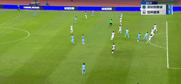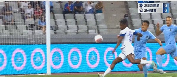 第25分钟,深圳新鹏城扳平比分,苏祖头球解围时顶向自方球门,皮球击中横梁后弹回场内,埃杜-加西亚补射破门,这也是新鹏城队史首粒中超进球,新鹏城暂1-1沧州雄狮。