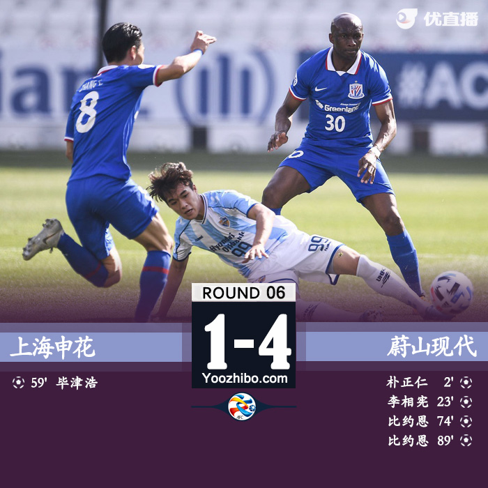 24直播网讯:北京时间12月3日晚18点,2020赛季亚冠F组小组赛展开末轮较量,上海申花对阵K联赛劲旅蔚山现代。上半场,申花连丢两球,彭欣力远射偏出;下半场,申花加强攻势,莫雷诺助攻毕津浩扳回一球,李帅送点,约翰森连入两球。最终,上海申花1-4不敌蔚山现代,位列小组第三无缘出线,蔚山现代和东京FC晋级。