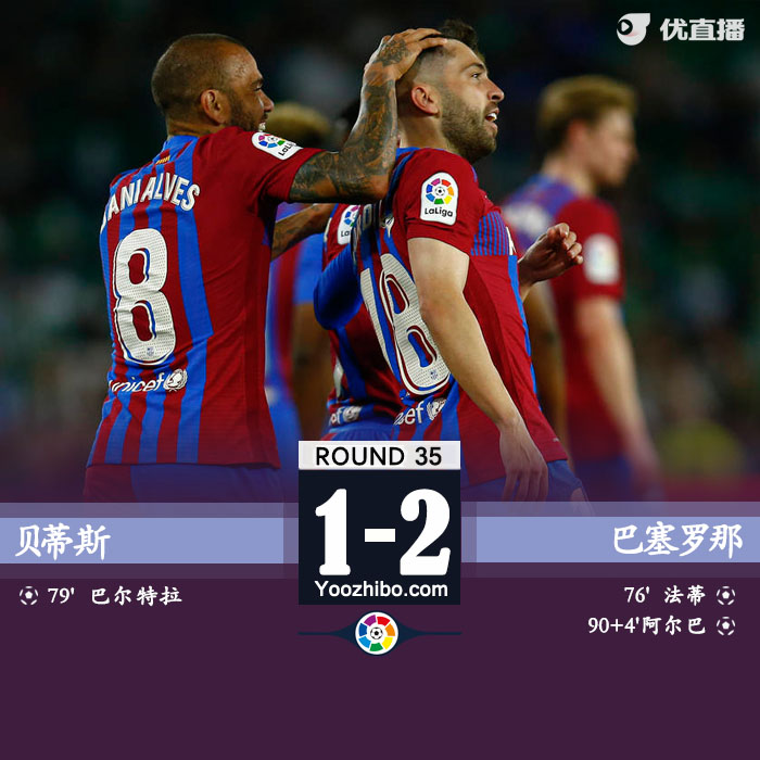 北京时间5月8日凌晨3时,2021-2022赛季西甲第35轮展开角逐,巴塞罗那客场对阵皇家贝蒂斯。上半场双方均无建树。巴萨半场0-0战平贝蒂斯。下半场,替补上场的法蒂破门首开纪录,随后巴尔特拉扳平比分,阿尔巴补时阶段完成绝杀。最终巴塞罗那客场2-1战胜皇家贝蒂斯。此役战罢,巴萨领先第五名贝蒂斯11分,提前三轮锁定本赛季西甲前四名。