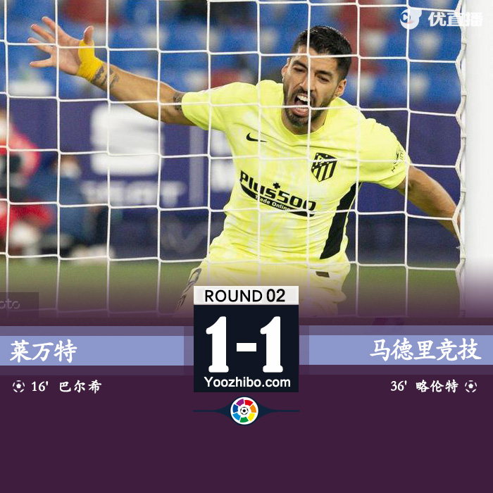 [咪咕全场集锦] 西甲-略伦特远射建功科雷亚失空门 马竞1-1客场憾平莱万特6分领跑