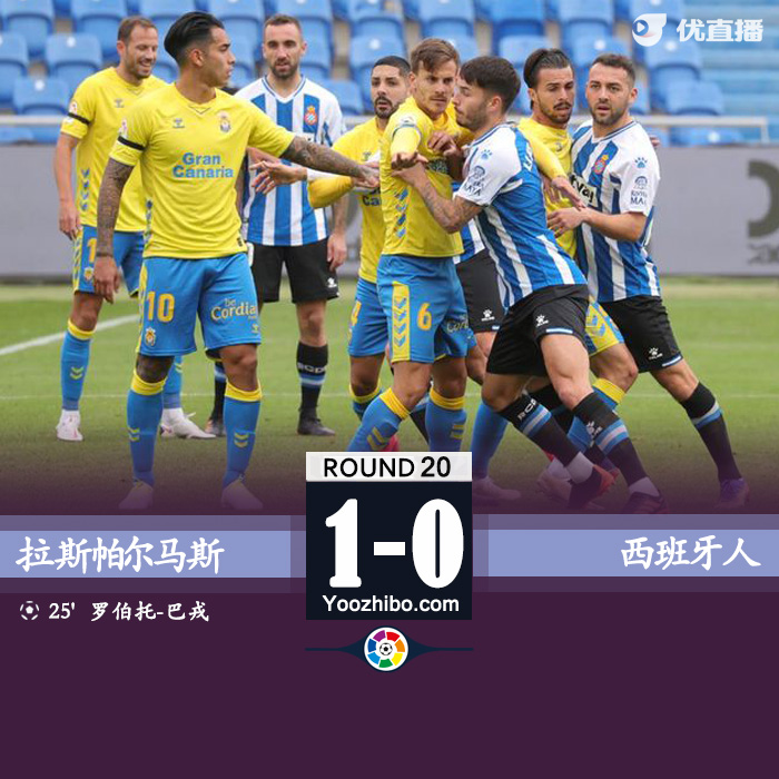 北京时间1月3日23:00,西乙第20轮,西班牙人客战拉斯帕尔马斯。上半时罗伯托-巴戎为拉斯帕尔马斯先拔头筹。下半时尤易斯-洛佩斯直红罚下,西班牙人10v11,尼科-梅拉梅德破门因德托马斯越位进球无效,81分钟武磊登场。最终,西班牙人0-1拉斯帕尔马斯。