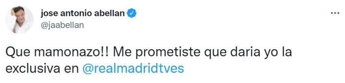 皇马电视台主持人何塞-安东尼奥-阿贝兰在推特上大骂卡西:SB!你答应过我,在我节目里独家宣布的!
